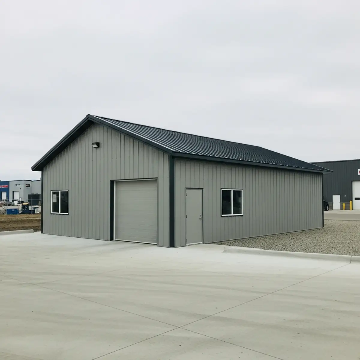 The 24 foot width is compact and efficient for tighter lots, while the 40 foot depth provides practical workspace for machinery, shelving, and equipment storage. The 16 foot wall height supports oversized doors and allows tall racking systems, stacked inventory, and overhead equipment. The clear-span interior provides an unobstructed work area that suits a wide range of commercial layouts.