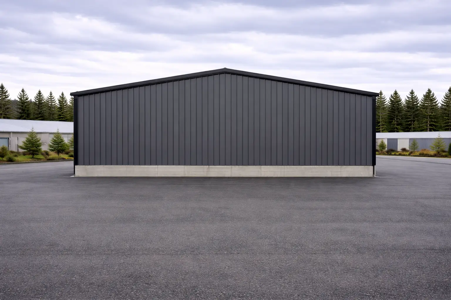 The 16 ft wall height provides practical clearance for commercial vehicles, service equipment, and overhead lighting systems while maintaining manageable interior air volume for heating efficiency.