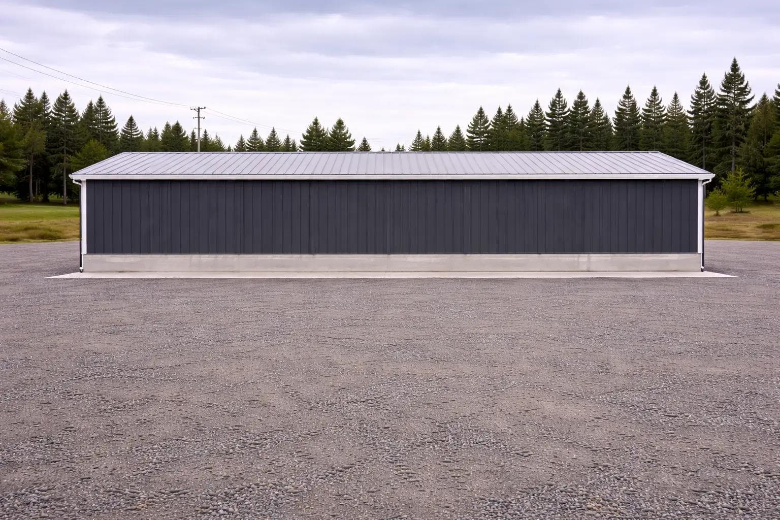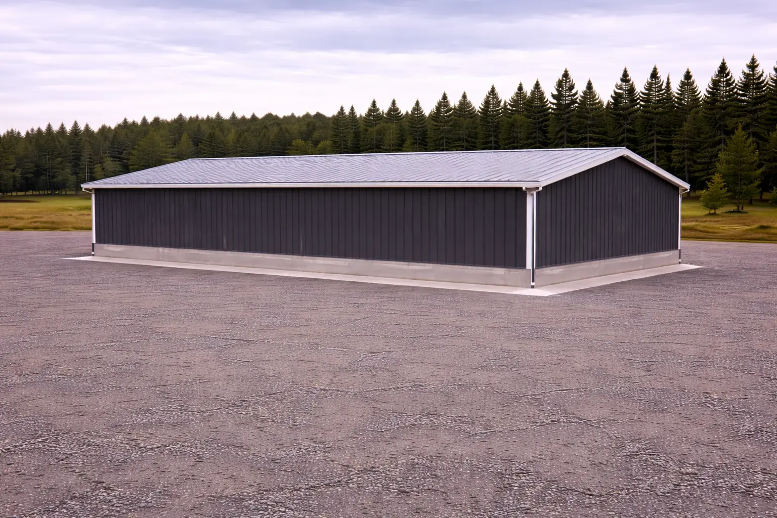 The clear-span rigid frame eliminates interior columns, allowing uninterrupted commercial workspace and flexible interior layout planning.
