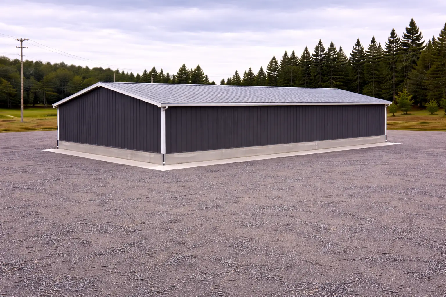 The 40 ft building width provides increased maneuvering space for equipment and vehicles, while the 60 ft building length supports organized operational zones for servicing, storage, and workspace activities.